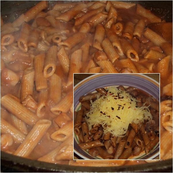 Pasta, as many of you know, is one of my favorite foods to cook and eat. The ingredients and styles are seemingly endless, but I can narrow down the way I usually prepare it to three styles: With homemade tomato sauce, aglio e olio (oil and garlic), or fra diavolo (brother devil); for this particular recipe I included bay scallops. I also topped it with spaghetti squash (cooked with garlic and oil of course). The process in which I made this recipe is pictured below, but if you’d like a printable recipe (made with halibut instead of scallops), and read about the origin and history of the dish, click here. For a recipe for the spaghetti squash, click here.