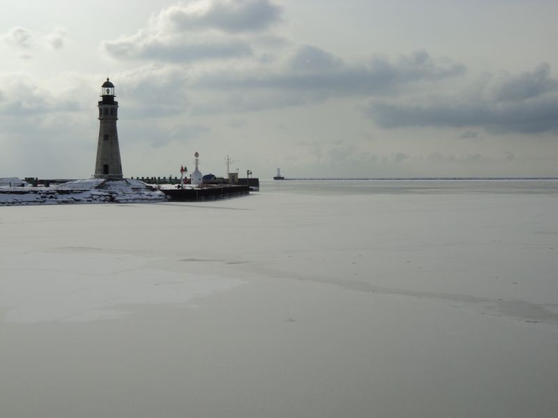 Here’s a photo of the Buffalo (main) Lighthouse where three bodies of water meet: the Buffalo River (which also connects to the Erie Canal), the Niagara River, and Lake Erie. Off to the right is Canada. Very tranquil.