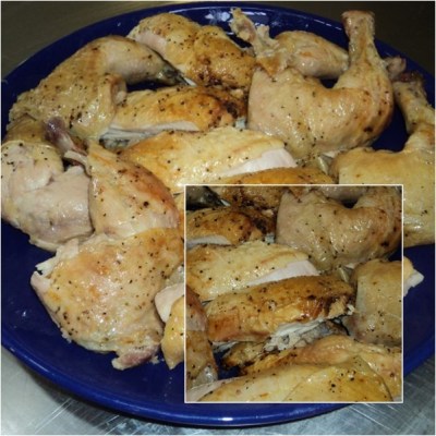 OK, first I have to admit that this is one of the weirdest recipes I’ve made…but the outcome is really delicious. The chicken meat is moist and the skin crisp…and it has a nice flavor also. It’s a recipe that was undoubtedly developed by some drunk guys at a backyard barbecue. The premise is this: take a full or partial can of beer and carefully “sit” the chicken on it. Place the chicken on a grill with a lid (making a sort of oven) and cook it over indirect heat until done; this also works well in a traditional oven, as these birds were cooked this morning. You can purchase wire racks to help hold the chicken vertical but they are not necessary; if you are careful the bird(s) stand by themselves. As the chicken cooks the beer boils in the can steaming it from the inside-out, and giving the bird a nice flavor. Simultaneously the bird roasts from the outside-in and the skin browns and becomes crisp. I made these for employee lunch today. Everyone seemed to love it; tomorrow leftover meat will be made into chicken salad. Not withstanding, and regardless of how good the chicken is, am I the only one that thinks there is something slightly obscene about this recipe? For a multitude of recipes and apparatus to cook this recipe, click here.