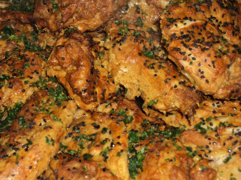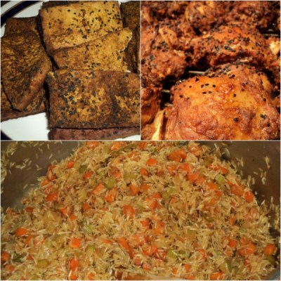Tandoori Chicken Breasts and Thighs (and also Tofu), served with Basmati Rice Pilaf