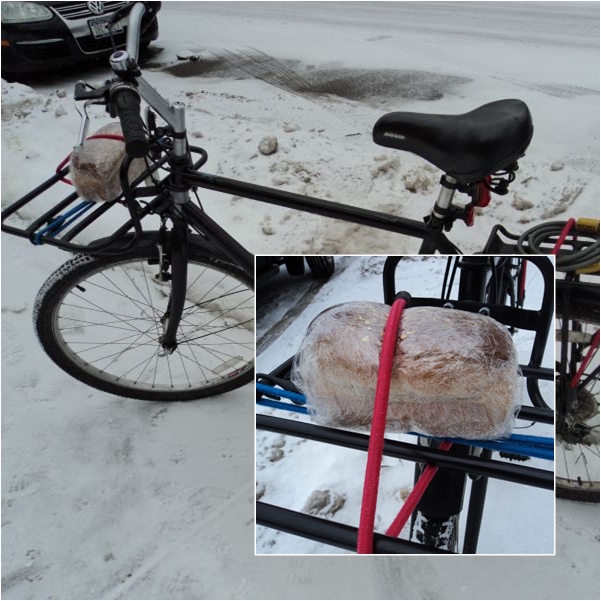 A small loaf of Honey-Oatmeal Bread (click here for a recipe and photos of how to make it–and a pizza–sans oatmeal).