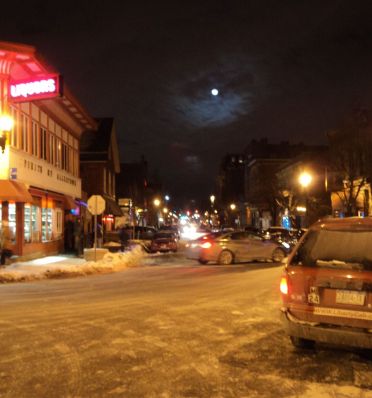 I was on my way to purchase a bottle of wine tonight after work and was struck by the scene above. The picture is taken from the focal point at the foot of Allen Street on the corner of Wadsorth looking east. The ominousness of the moon literally stopped me in my tracks…beautiful (frigid, too…10F). The moon looks full but according to the little widget in the sidebar it is a waning gibbous moon (93% full). This makes sense because according to this page a waning gibbous moon: sails over the eastern horizon in the hours between sunset and midnight. It was about 10pm when I saw it and was looking east. I stood there looking at it for a few minutes, shivering a little, but in amazement as I snapped a few photos. While it seems as if it were floating over our little city, as I looked at it I marveled that people in many areas of the country, if not the world, were looking at the very same moon at that very same second. It made me feel small…but sometimes I like that. Click the image if you’d like a larger view.