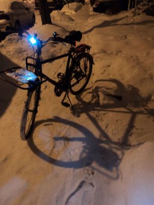 This is almost a continuation of a post I wrote a few days ago regarding the pattern of crazy weather we’re having this year…it snows, then turns frigid cold, then it warms up, things start to melt, then it turns cold again and things freeze rock-solid, then it snows…you get the picture. Anyhow, the above photo is a screen shot of my desktop just before I left for work this morning. I can’t remember the last time it was -8F (-22C). As I’ve mentioned before I live relatively close to work (less than a mile) so rather than deal with the extra windchill created on a bike I chose to bundle up and walk. Firstly I’ll say that it was truly beautiful..it was bright and sunny and there was nary a breeze. But geeze o’ man was it cold. My nostrils were freezing and I found myself coughing at the intake of such arctic air; wrapping a scarf around my face solved the problem. And the intense cold seemed to intensify things. I’m an observer by nature and I tend to over analyze things, but it was incredible. As I walked the snow squeaked, and the steam from houses and car exhaust just seemed to hover in the air, and as people passed me I could hear not only the sound of their feet squeaking in the snow, but also their breath. For lack of better terms, and not to sound too hokey, it was almost mystical; it was beautiful (but I was glad when I arrived at work and the radiators were already at full capacity). Throughout the day the temperatures warmed some…we had a balmy high of 19F (-7C) and it’s about 18F as I type these words. Anyhow, for various reasons (partly because of the cold, but also because of other personal obligations) I have not been on a bike in about about 3 days (a long time for me). After work I had to drive somewhere and was going to go to the health club. I was in the truck so I thought I would stop (it was on the way). I usually ride a bike there and am always glad because the parking lot (for cars) is about three-times to small. As usual when I arrived it was packed and cars were circling looking for a spot…this time I was in one of those cars. Feeling frustrated I said to myself aloud, almost chanted…I should be on a bike. Because if I were on a bike I wouldn’t be circling I’d be locking my bike to the post next to the door where I usually do. Then later, after returning home, parking the truck and having a quick dinner, I had a meeting at church I wanted to attend. I looked outside and the street was about 3 inches deep of un-plowed snow but I thought there is no way I am not riding a bike. My route to church is mostly side-streets plus one back alley/long driveway…in short, not main roads that are dry and plowed. It was challenging to say the least but it felt so good to be on a bike. It’s interesting how people often ask if I’m not scared to be on a bike in the snow…but on my ride to and from church this evening I felt more in control than I have in the past three days of driving (and I consciously use the word control as metaphor for many things in my life). On the way home there is one point where I ride up a slow and gradual incline, and in nicer weather I always relish this because it’s a nice but brief workout. Tonight, because of the snow and cold, it gave me a sense of accomplishment and an extra-hard workout. I will not lie and say that I was warm the entire way home–because I surely wasn’t–and that it was an entirely easy ride–because this wasn’t either–but being out in the elements, even in the city, is so invigorating to me…in a way that sitting on a car-couch and pressing a gas pedal can never be. And walking to work in sub-zero temperatures or riding home at night in just slightly warmer temps makes me thankful for the changes in weather, that I have the opportunity to feel the sweltering heat of August but also the frigid cold of January. It makes me feel good…it makes me feel fully alive. And that, I think, is a good feeling to have.