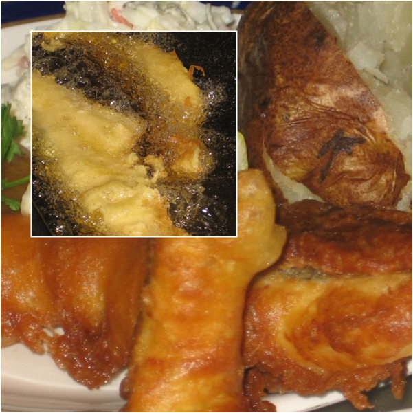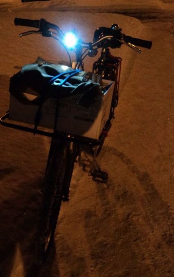A canvas book bag containing a couple actual books and an e-reader containing 152 electronic books. A cardboard box containing a small loaf of bread, a couple baked potatoes, a pint of homemade creamy coleslaw, and a classic Friday night fish fry. To read more about fish fries–it’s origin, popularity, and recipes (written by yours truly)–click here. To see a “best of” compilation of some of the other things I’ve carried on a bike, click here.