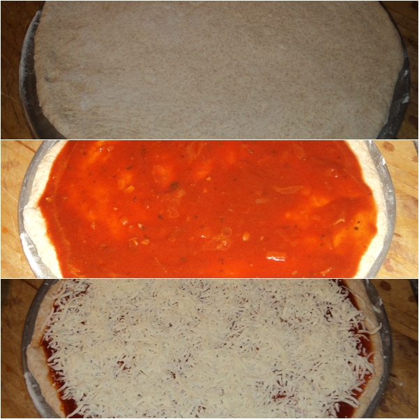1/2 recipe pizza dough, rolled thin