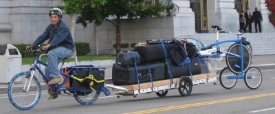 Firstly I would like to say that I don’t know who this person is or where the photo was taken (I came across it here), but I thought this was so impressive that I’d pass it along. The guy is riding a Mundo, pulling a fully-loaded 8ft trailer (looks like a bikes-at-work trailer), with another trailer/bike attached at the rear end (but oddly doesn’t have anything loaded on the Mundo itself). Impressive none-the-less.