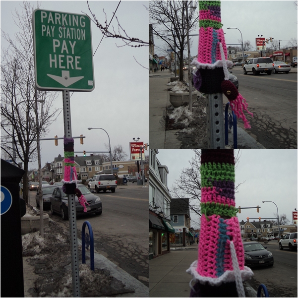 I first heard about this form of public art a few years ago; referred by many different–yarn bombing, yarnbombing, graffiti knitting, guerrilla knitting, or yarnstorming. And I first encountered it on a trip to San Fransisco last summer (click here to see that post with pictures, but this is the first time I’ve seen any in Buffalo…Nice! Keep it up yarn bombers…I know there has to be more. Thanks for your little glimpse of creative beauty. To see more pictures (not mine) and to read a little about the history of this type of art, click here or here.