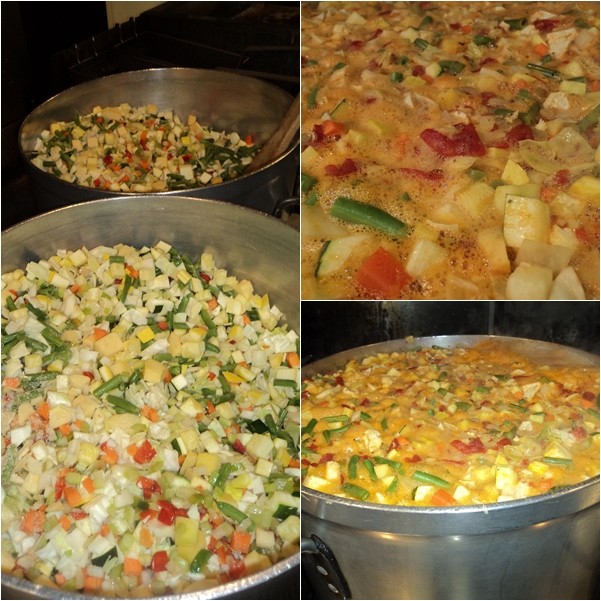I enjoy making soup almost as much as I do bread…it’s super nourishing and inexpensive to make (it’s also one of the oldest prepared foods). And I was thinking this as I was making 20 gallons (75L) of vegetable soup today at my place of employment.  Thankfully a couple of my cooks cut and diced all the vegetables (and made the broth)…I just made the soup (thanks Steve and Sam!). Anyhow I thought I’d post a simple recipe.