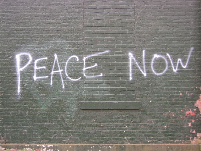I’ve been riding past this spray-painting on the side of a building at Allen and Delaware Streets for the past week. I look at it every time I ride past it and I finally snapped it’s picture. It’s a powerful statement in just two words. America is now, for the first time in it’s short history, fighting three wars at once (and this is not counting the unofficial war at our southern border). Personally I find it terrifying and embarrassing at the same time. Maybe we should focus more on the violence and many other issues in our own country before we try to change another. I’ve had to stop reading the daily papers because it make me so sad when I see the devastation that is happening…and which continues to escalate. Violence cannot be conquered with violence…it only leads to more violence. We need PEACE and we need it NOW. It is our only hope. I truly believe this.