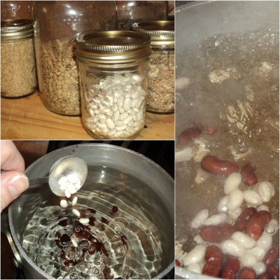 What’s slightly different in this recipe (opposed to previous versions where I used some white flour) is that rather than using a loose pre-ferment (French poolish), I used a firmer one, more like an Italian biga. And I also incorporated the autolyse method with the remaining flour (meaning I soaked the whole wheat flour to soften it). Anyhow, here it is in words and pictures; a printable recipe follows. It’s a simple recipe…basically, put some beans and grains in a pot and make bread for yourself.