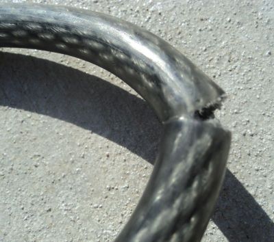 Today when I was locking up my bike at a store I happened to notice the cut in the cable (pictured below); the cable is cut on both sides and nearly through…he wasn’t just looking at the bike he had the cutters on the cable.
