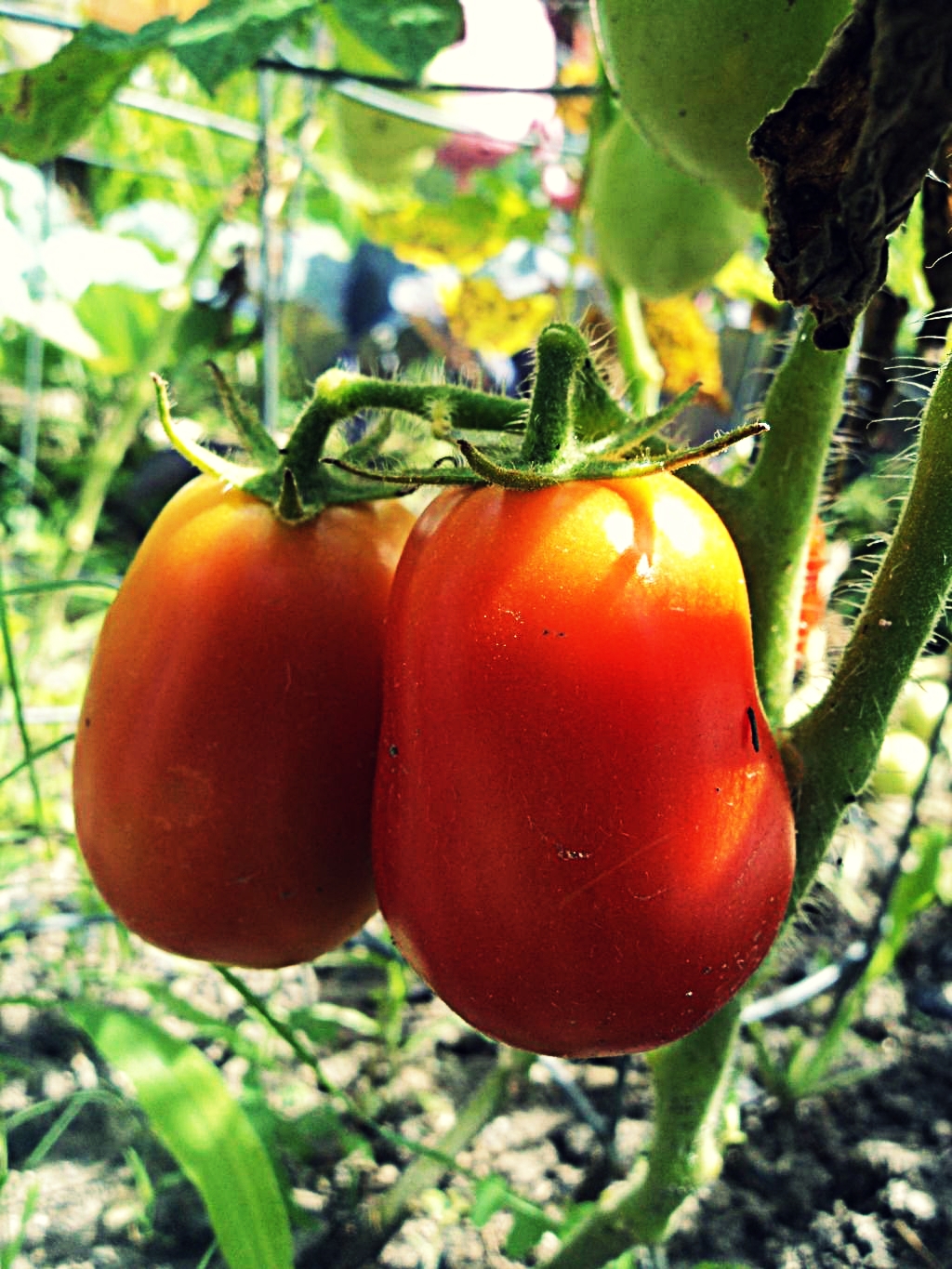 No I am not turning into a vampire, I’m referring to the first bite of tomatoes from my garden this year. It’s sort of a ritual of mine to eat the first tomato of the season straight from the vine, which I did tonight (the one in the foreground). Though I have a fair amount of tomatoes on the plants, the plants themselves aren’t doing so well this year. Maybe I need to fertilize the soil next year. Anyhow, I had a delicious tomato, cucumber, onion, and basil sandwich for dinner tonight (on whole wheat bread and slathered with mayonnaise). It was delicious and extra satisfying knowing that most–but not all–of the ingredients grew a few feet from where they were consumed. For tomato recipes, click here.