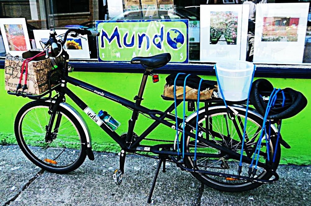 And a quick comment: As most of you know I mostly ride my Mundo bicycle day-to-day during the summer months, and I pass by the above photography studio nearly every day on my way to work…Mundo Images. Anyhow, I’ve been thinking of taking a photo of my Mundo in front of their Mundo for a while…and I finally did.