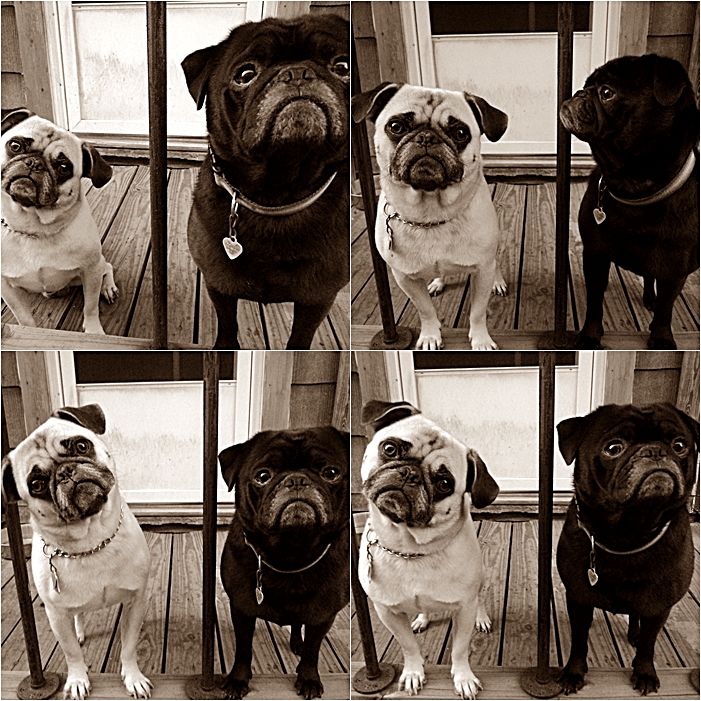 I took a few pictures of my dogs today and thought I’d share….they crack me up, which means they are doing their job. Pugs, I’ve read, were originally bred to amuse the Emperor of China. I don’t know if it is true or not but they sure amuse me. I’ve always been a “dog person” and have known they were good for me, but as of late it’s a proven fact that being an animal lover–cats, too, but especially dogs–is good for you (click here or here). That’s Maxwell on the left and his younger brother Franklin on the right (same parent, different litters). Notice how Franklin is looking away in a couple of the photos; poor little guy is hearing impaired and he probably can’t hear me talking to him. Sometimes they are annoying as hell (like when they chew stuff), but mostly they bring me joy and make me smile. Sometimes I don’t feel worthy of their unconditional love.