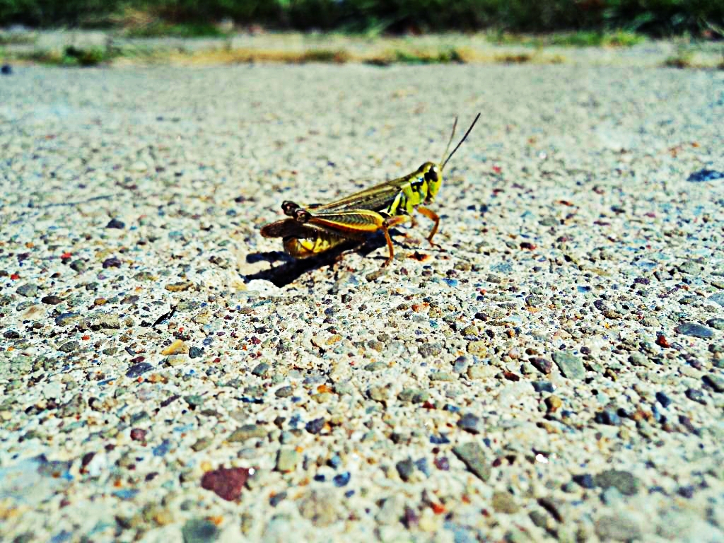 It was nearly 90F/33C and very humid yesterday and today…hot for this late in the summer, I thought. On my way to the coffee shop this afternoon (with a laptop to work amid air conditioning) a couple grasshoppers hopped and flew in front of me then landed on the sidewalk / pavement. With the air being as hot as it was and the sun baking directly down without a cloud in sight I can’t imagine what the temp of the cement was (my feet were certainly hot). The grasshoppers didn’t seem to mind, why should I?
