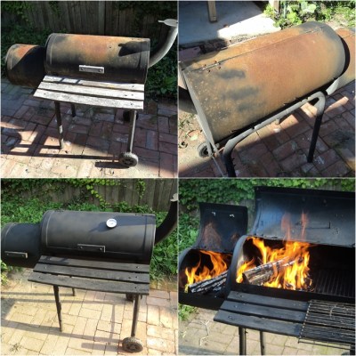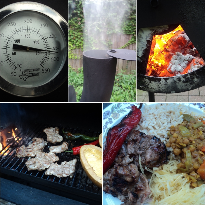 First I have to qualify the above statement–the title of this post–by saying that I don’t love just any trash…but I really enjoy picking up useful and fixable curbside items that other people discard. But if you’ve been a regular reader of this blog you already know this. I have a job, and I can afford things, but I like to reuse and recycle things…and also get things for free. I’ve done this as long as I can remember and I really don’t care who sees me picking through their (sometimes useful) trash. The grill pictured above is case-in-point. The top two photos are the grill just after I wheeled it to my backyard last week. It was sitting curbside down the street for a few days and I finally went and inspected it. After bringing it home and cleaning it out, I basically tightened every screw and bolt on it, re-attached the handles (one was inside the thing and half-burnt), and gave it a couple coats of high-temp paint (which I happened to have on hand). The bottom two (of the above photos) are the finished grill that is fired up for the first time…like new. All-in-all I put about (maybe) two hours of work into it but not a penny of money. I’ve eyed this exact model at the store for a couple years and have put off buying it (thankfully); new in the store it was about $130. Anyhow, this couldn’t have come at a better time. We’ve been in the middle of a late summer heat wave, and having the weekend off the last thing I want to do is heat up the (indoor) kitchen…so with the help of my double propane burner I cooked an entire meal out of doors…marinated chicken, peppers, spaghetti squash, curried lentils, and brown rice. So at this point I’ll reiterate my initial statement…sometimes I love trash.