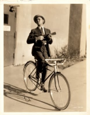 I’ve posted in the past of famous people on bikes, click here and here. Anyhow I thought I’d pass along a link of to site I’ve visit periodically, it posts only pictures of famous people on bikes–mostly from a bygone era–it’s called Rides a Bike. Click here, for example, to see a picture of Brian Jones on a cargo bike. I came across the above photo today and it’s one of my favorites. It’s Cliff Edwards (aka Ukulele Ike) playing his ukulele on a bike. While he was most known as the original voice of Jiminy Cricket, he was a multifaceted entertainer with many talents, on of them being the ukulele (a true virtuoso on the instrument). If you Google him you’ll find plenty of songs and clips of him performing, but the one below I found particularly entertaining. To me a ukulele brings me the same joy as a bike…it’s nearly impossible to play it without it making a person smile.