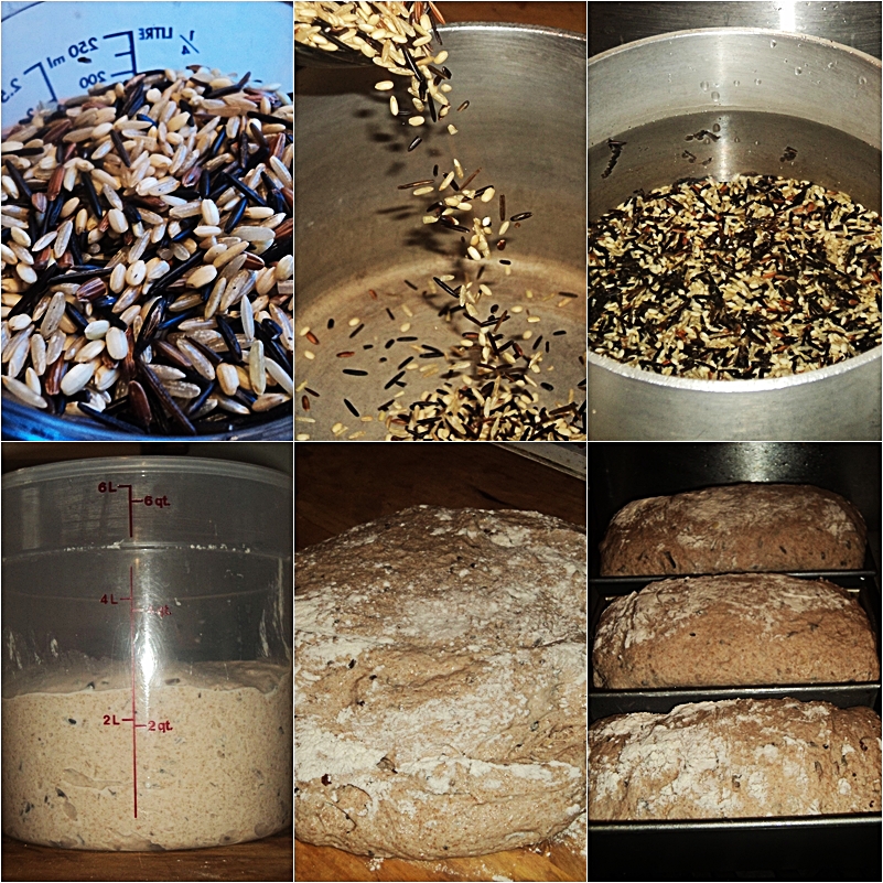 This bread is another example of whole wheat bread that is not only really delicious, but super nutritious as well. That’s them pictured above after just being placed in the oven…beautiful, aren’t they? It is easier to make than the recipe may seem at first glance, and the resulting bread is as soft and airy as any supermarket bread (yet it still only has a handful of wholesome ingredients, all of which are pronounceable). This is actually not unlike my Ezekiel bread recipe but is a bit easier (less ingredients to boil), and while it is called a brown rice bread nearly any grain can be substituted (I used a mixture of brown, black, and wild rices). For an Ezekiel bread recipe, click here; for other bread recipes, click here; for recipes using all whole wheat, click here.