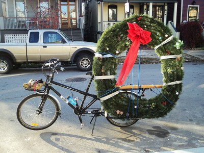 6. Joe, decorating a bike for the holidays… did you see this one? http://yuba-mundo.blogspot.com/2011/11/weihnachtsbeleuchtung.htmlBut your Xmas wreath look way more cool!Here in Germany it is not that unusual riding a bike. In the summer….If you ride a bike in winter and a bike like the Mundo it makes you a freak over here, too.So never mind about being a freak! There are more freaks out there, than we know. ;-)I am proud to be a freak!And my wife is proud of me being a freak, too.My parents are, too.My parents in law…. Well let's about something else. ;-)They think, I behave ridiculous.But nor me nor my wife mind about that. ;-)It's just perfect to be freak, isn't it?