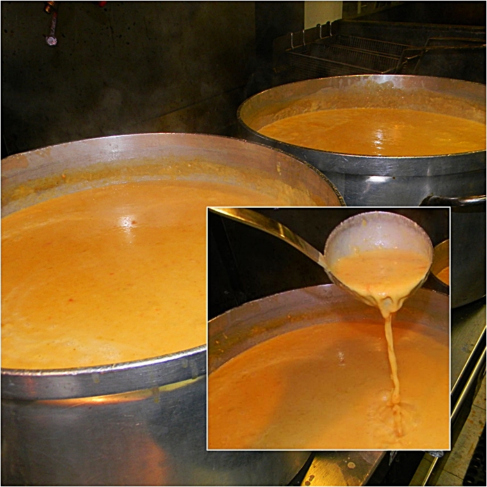 Melt the butter in a smallpot over medium heat and add the onions. Sweat the onions over mediumheat for 5 minutes or until they are translucent. Add the flourand stir over medium heat for 2 minutes. Stir in the sugar, cinnamon,allspice, nutmeg, salt, pepper, and diced pumpkin; sauté anotherminute. Add the stock and simmer for 15-20 minutes, or until thesquash is very tender. Add the cream and simmer for 1 or 2 minuteslonger. Puree in a blender or food processor.