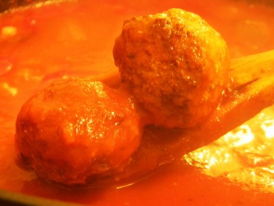 Likely everyone in America has an opinion on the recipe and/or origin of classic tomato sauce and meatballs, especially if you are of Italian ancestry. Some say this is purely an American recipe that was adapted by early Italian immigrants out of necessity, while others believe it has its roots in the “old country”…and surely no recipe is as good as your mother’s or grandmother’s. Anyhow, I am not of Italian ancestry but grew up eating spaghetti-and-meatballs (made from scratch), and it’s still one of my–and my son’s–favorites. It’s easy to prepare, delicious, and you can make enough meatballs and sauce to freeze for a future meal when you’re in a hurry. We had this for dinner tonight and it was so good I believe I’ll go back for another helping.