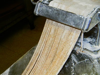 Pasta is, as its name suggests, a paste. The paste is most often made with flour and eggs, water sometimes replaces all or a portion of the eggs; vegetable purées can be added, and also salt, oil, herbs or spices. There is no need for special equipment; your hands are the best tools that you can ever own. The finished dough can be rolled and cut using a simple rolling pin and large knife, or with the aid of a hand-cranked pasta machine, the latter taking less effort and offering more consistent results.