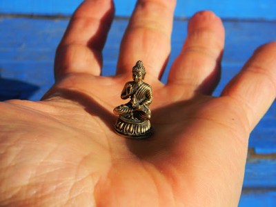The photo immediately below is of a mini bronze Buddha statue I purchased at Namaste Bookshop on my most recent trip to NYC.