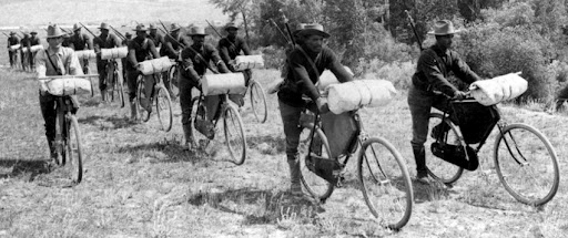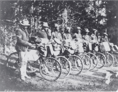 I’ve posted the above picture before and enjoy it so much that I use it as the background image on my computer at work (click it for a larger view). Sometimes while I’m eating lunch I sit and look at it, and that’s just what I was doing today (I love how proud they look). It’s an image captured in 1896 by Frank Jay Haynes in Yellowstone Park. That summer they rode those heavy bikes nearly 2000 miles/3218 kilometers, while carrying all their gear and wearing heavy wool clothing…impressive by any means. And I can’t imagine the hardships they likely endured…not just physical but also emotional and racial (this was 1896 after all). I was thinking this as I looked at the photo today, and found it so inspiring (and also remembered that it is Black History Month) so I thought I’d re-post the photo with a couple additional photos and a few new words.