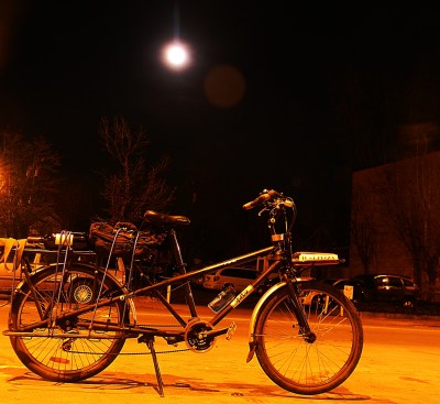 A quick comment…I had mentioned yesterday regarding the wacky weather and how it was supposed to warm up today, well it did…and did it ever. I believe the high temp today was something like 62F/17C. As I pedaled and coasted home from the gym tonight it felt like a balmy summer’s eve…OK maybe not balmy, but it certainly was warm and nice; the air felt warm on my skin as I coasted home. And on my way home I couldn’t help think how wonderful it was to be on a bike and in the open air. After leaving the gym I stopped at three stores, and the entire trip–including the gym–was about (I’m guessing) 3 miles/4.8 kilometers. And as I coasted down my favorite hill (very minor hill…you likely wouldn’t even notice it if in a car), which is the last stretch before I approach my street, I had the full moon on my left (pictured above and below) and Jupiter and Venus to my right (for pictures click here). I really felt like continuing on for a warm evening ride…but alas, I had some things to tend to. And besides…I had to eat the pizza and drink some wine.