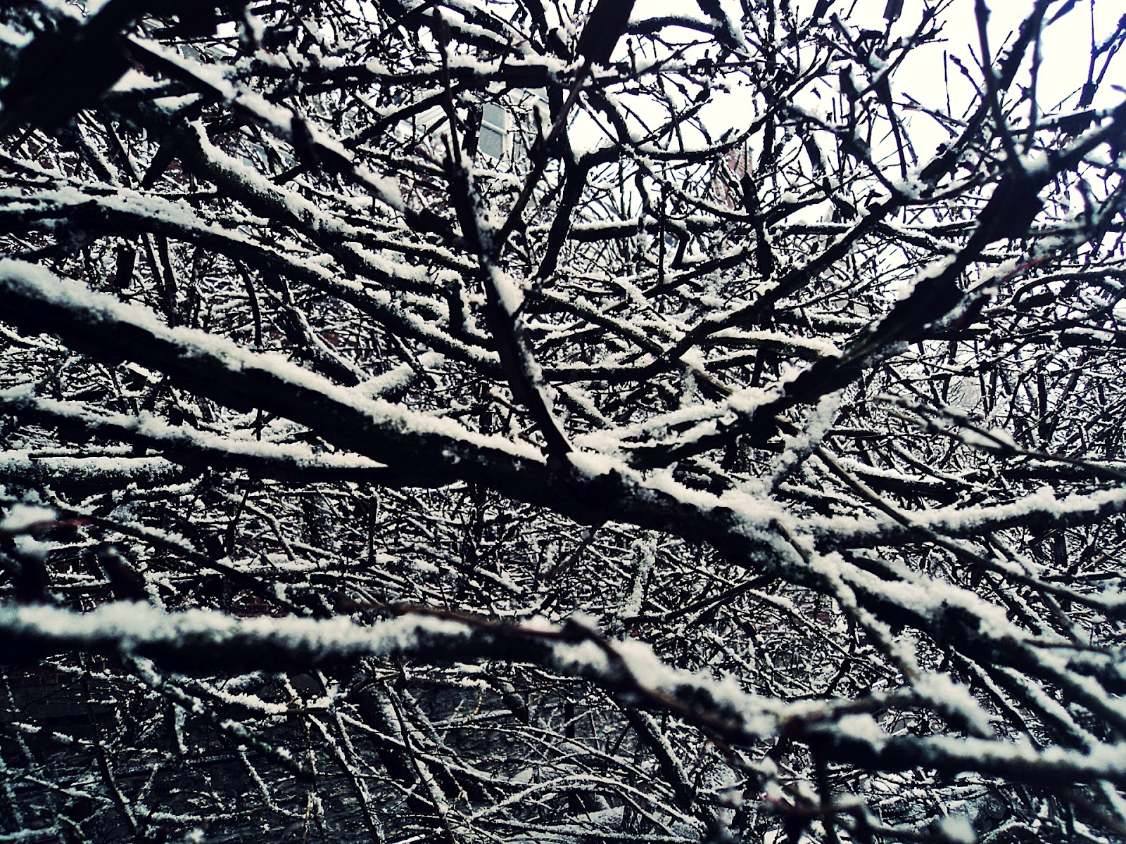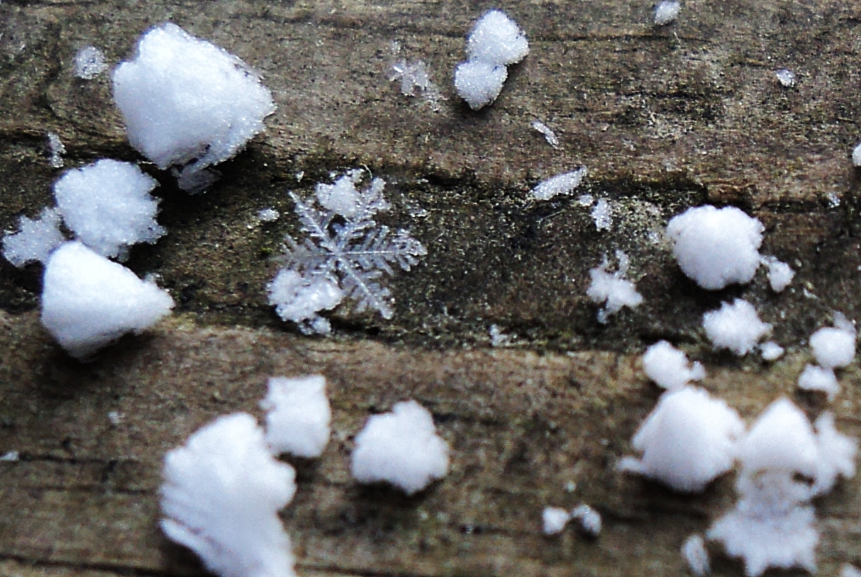 Well, today is still in line with the wacky weather we’ve had recently…warm-cold-warm-cold. Two days ago the high temp was in the mid 60’s F. Today I woke and it was about 20F. Anyhow we had a small amount of snow–and likely because of the easy winter we’ve had this year–it seemed novel to me; beautiful. These photos were taken about 8am, just before I left for work. My favorite is the one above…a closeup of larger pieces of snow with a single picture-perfect snowflake.