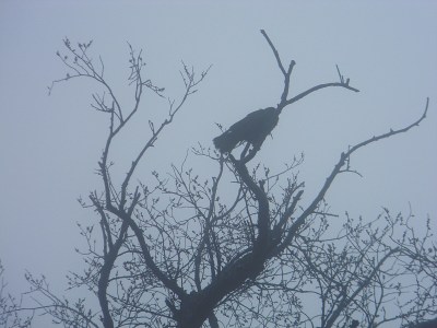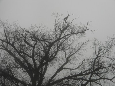 This morning was unusually foggy…it gave everything a sort of misty appearance. I caught veiw of the crow in the treetop (pictured above and at bottom) and snapped a few photos.