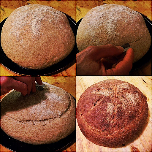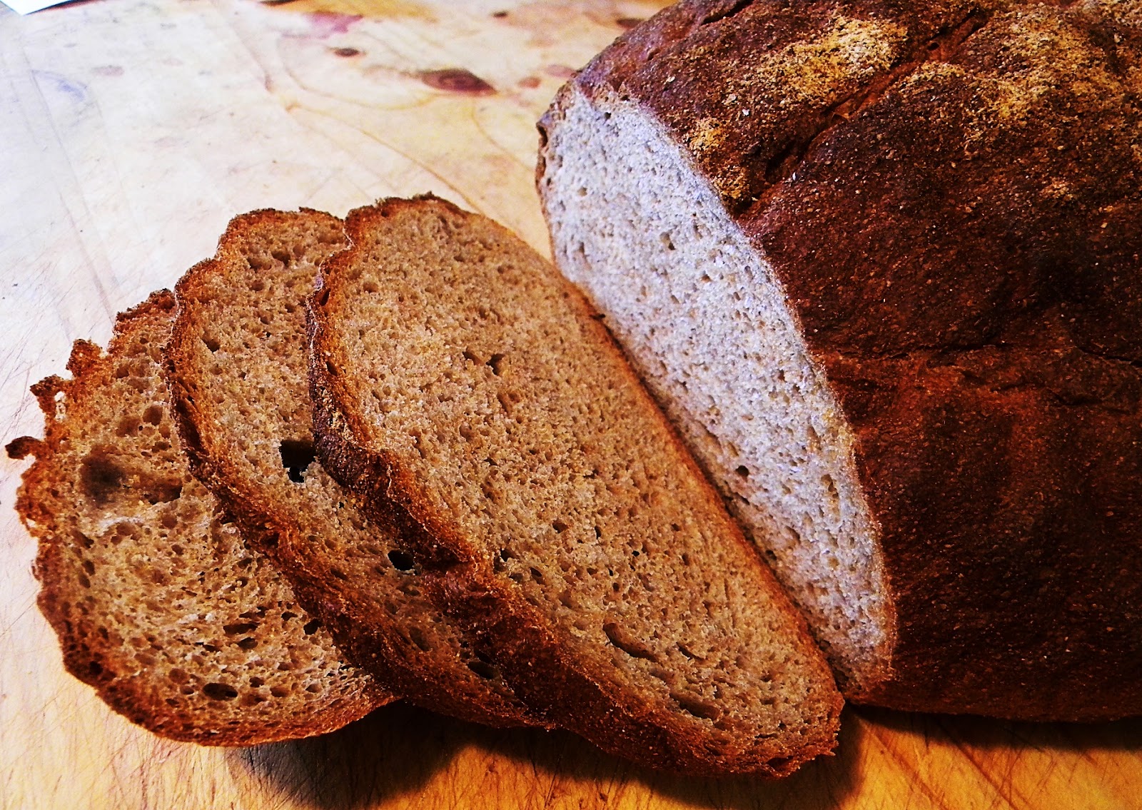 This recipe is the not only the basic recipe I use for all of my whole wheat breads, it is the base of all my whole wheat bread recipes…if you master this recipe the variations from this are nearly limitless. This is also an excellent example of artisan bread being made with only whole wheat flour. I use a few more ingredients in this recipe than in the most basic of them all–four ingredient bread–but I prefer this one. And while the Ezekiel Bread recipe and Brown Rice bread may have more substance to them, they also require more time and a bit more effort…this bread, on the other hand, is simple to make (but not simple in flavor). This recipe is also an excellent example of my theory that bread nearly makes itself…we–the bakers–simply combine the ingredients and guide them along. This can be baked free-form (as pictured in this post) or in loaf pans for a more traditional sandwich bread.