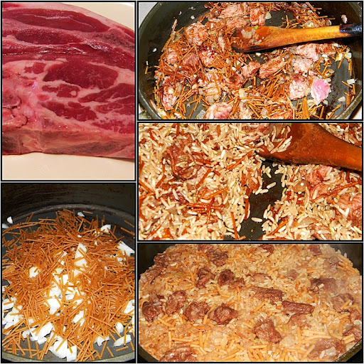 This is a variation of my recipe for Lebanese Chicken and Rice. In this version I replace the chicken with lamb and use brown rice instead of white. Beef or pork can replace the lamb but it’s not quite the same. The aroma this dish (or any of it’s variations) will permeate the house with the sweet smell of broth and spices simmering.