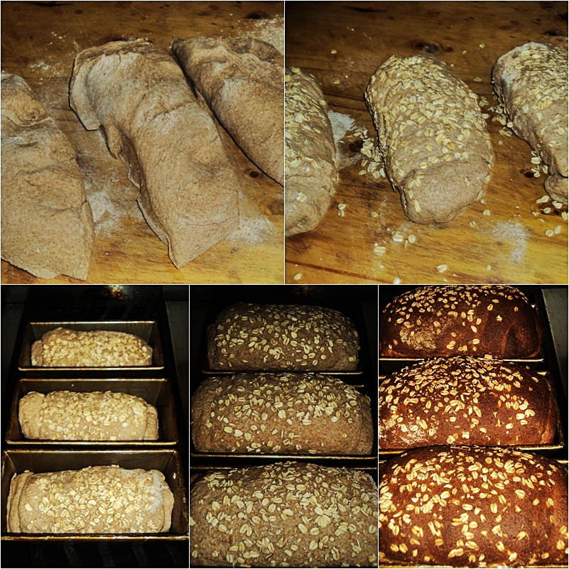 Cut the dough into two or three pieces, shape them into loaves, roll them in oats, and place them in loaf pans. Allow the bread to rise for about an hour, and bake them in a pre-heated oven. Simple and delicious. (a recipe is below).