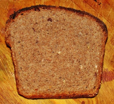 Two evenings ago I thought I’d start a batch of this bread and let it ferment overnight, so I boiled the grains and beans in the evening. After they were boiled I shut them off on the stove to let them cool and forgot about them. Literally. So I just put a plate over the pot and went to bed for the evening. I had to work yesterday evening but thought I’d make the bread prior to going to work so I started the preferment and autolysis first thing in the morning. Well, you guessed it, time slipped away from me and I never even mixed the dough let alone baked the bread. So I covered the bowls of preferment and autolysis and placed them both in the refrigerator, and then went to work. This morning when I initially woke, I took the bowls out of the fridge to let them come to room temp for about an hour or so. Then–finally–I combined the two bowls and mixed the dough. After placing the dough in a rising bucket I returned it to the fridge and went to church. When I came home the dough had risen so I pushed it down and replaced it into the fridge while I did some yard work. Later, I removed the dough from the fridge, cut it into three pieces–two for bread and one for pizza–and panned all of them up. After allowing them to warm a bit again, I returned them to the fridge while I did some errands and stopped at the grocery store. When I returned, I removed the doughs from the fridge for the last time and preheated the oven while I made the pizza. By the time I put together the pizza the oven and pizza stone was hot enough so I baked the pizza. After removing it, and allowing it to cool for about 5 minutes, I baked the bread while I ate the pizza. All-in-all, it was about 48 hours from boiling the beans until the bread came out of the oven and–while the above text may make it sound complex–it barely disrupted my life. One can postpone the dough from rising and fermenting it by refrigerating it, thus controlling how it progresses.