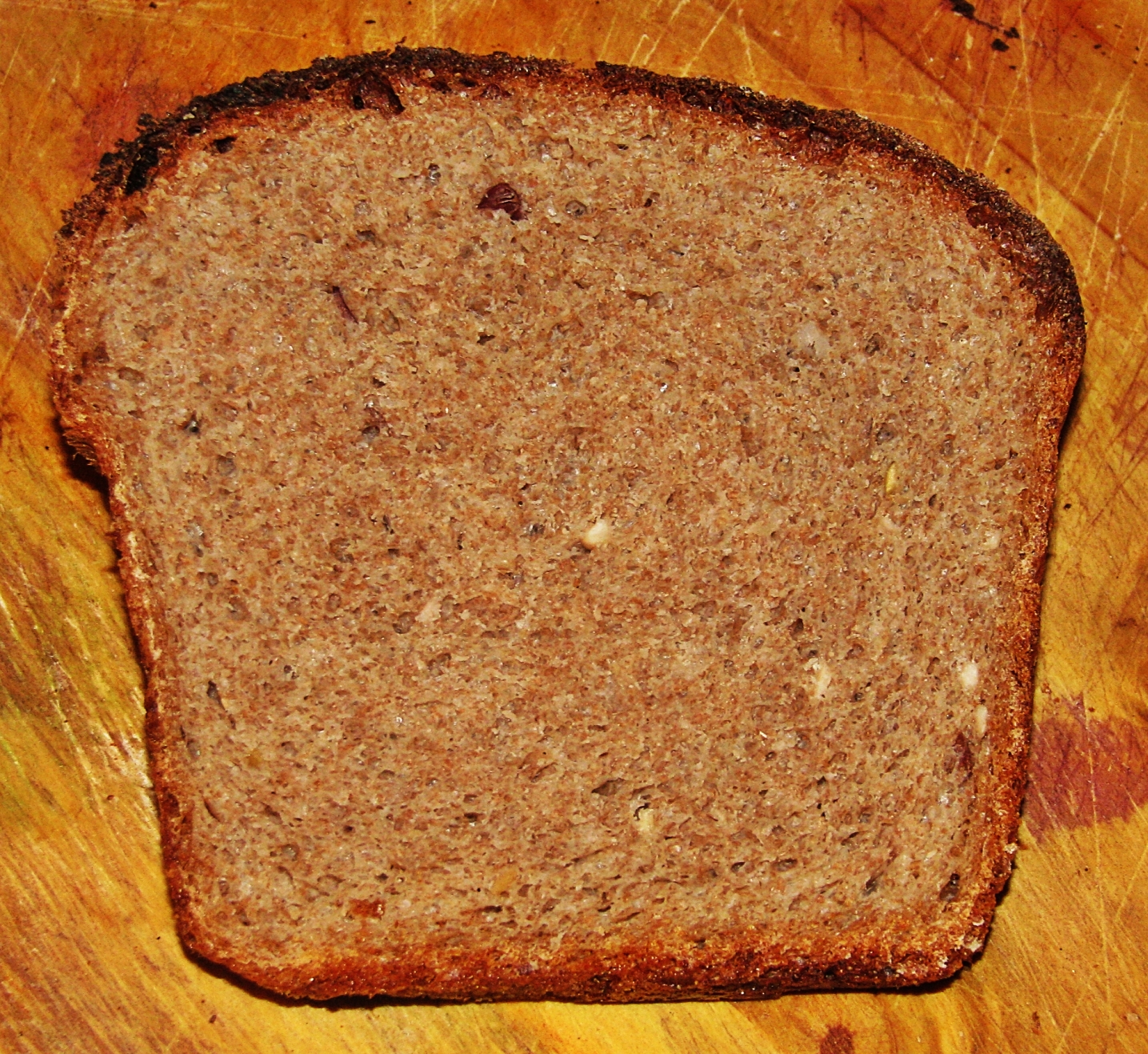 Two evenings ago I thought I’d start a batch of this bread and let it ferment overnight, so I boiled the grains and beans in the evening. After they were boiled I shut them off on the stove to let them cool and forgot about them. Literally. So I just put a plate over the pot and went to bed for the evening. I had to work yesterday evening but thought I’d make the bread prior to going to work so I started the preferment and autolysis first thing in the morning. Well, you guessed it, time slipped away from me and I never even mixed the dough let alone baked the bread. So I covered the bowls of preferment and autolysis and placed them both in the refrigerator, and then went to work. This morning when I initially woke, I took the bowls out of the fridge to let them come to room temp for about an hour or so. Then–finally–I combined the two bowls and mixed the dough. After placing the dough in a rising bucket I returned it to the fridge and went to church. When I came home the dough had risen so I pushed it down and replaced it into the fridge while I did some yard work. Later, I removed the dough from the fridge, cut it into three pieces–two for bread and one for pizza–and panned all of them up. After allowing them to warm a bit again, I returned them to the fridge while I did some errands and stopped at the grocery store. When I returned, I removed the doughs from the fridge for the last time and preheated the oven while I made the pizza. By the time I put together the pizza the oven and pizza stone was hot enough so I baked the pizza. After removing it, and allowing it to cool for about 5 minutes, I baked the bread while I ate the pizza. All-in-all, it was about 48 hours from boiling the beans until the bread came out of the oven and–while the above text may make it sound complex–it barely disrupted my life. One can postpone the dough from rising and fermenting it by refrigerating it, thus controlling how it progresses.