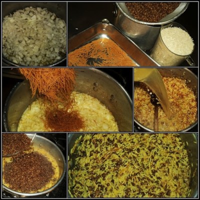 This recipe is classic Middle Eastern Food. It is also easy to make and so delicious that you won’t be able to stop eating it. The recipe I’ve included here, of course, is a variation on the traditional. This is a dish that is often eaten during Lent and for that reason usually remains vegetarian, but in this recipe I’ve included chicken broth. I also used long grain rice (basmati, actually) but you can use brown rice if you want to make it healthier (but you’ll have to increase the liquid and cooking time). And while much of the flavor comes from the caramelized onion, I also added broken pieces of vermicelli which were browned with the pasta. While I kept the seasonings simple, you can add a pinch of cumin, cinnamon, allspice, or hot pepper. I did add a pinch of turmeric for color (though it is not included in the recipe); hence it’s yellow hue. I made this for staff lunch today while at work, and my only problem with it is that I packaged up a container of leftovers for dinner and forgot it in the fridge at work…