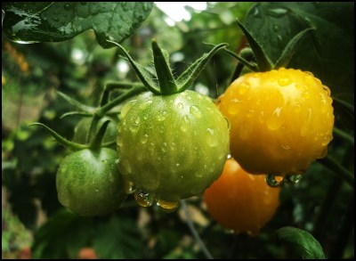 Well it finally rained today. A crazy heavy downpour with thunder and lightening. I stood on the porch and watched it for a while. It lasted only about an hour. The rain is so infrequent this summer it seemed really special. I wished it would rain all day. It’s not very often I hope for rain (my least favorite element to ride a bike in) but geeze o’ man did we need it. Anyhow, after it stopped I went out to the garden to pick food for dinner. Everything had that strange misty hue that only happens after a heavy downpour on a hot and humid day. I grabbed a camera and snapped a few photos and thought I’d share. Click for a larger view.
