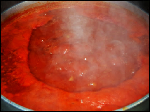 As summer begins to wind down the tomatoes and peppers are coming to full fruition. And one of the rewards each summer is tomato sauce. I make it a few times throughout the season and then usually one bigger pot…which was today. I made about 3 gallons of sauce “hillbilly style” (cooked it outside as not to heat up the kitchen). And I’ve mentioned before that for me cooking things from the garden outside is extra special (does it taste better or am I imagining it) because when I cook it outside it is being cooked just a few feet from where it grew. As the sauce was simmering I sauteed a couple pieces of fish then braised it in the tomato sauce and ate it (tossed with pasta) under grapevines while listening to NPR (and yelling at my pugs to stop jumping up at the table). Anyhow, the sauce is presently cooling in my fridge. In the next day or two I’ll package it in increments and freeze it for the off-season. And eating sauce in the middle of winter–which I made from scratch using tomatoes and peppers that grew in the front/back yards–that is the real reward for the time and care it takes to grow (some of) my own food.