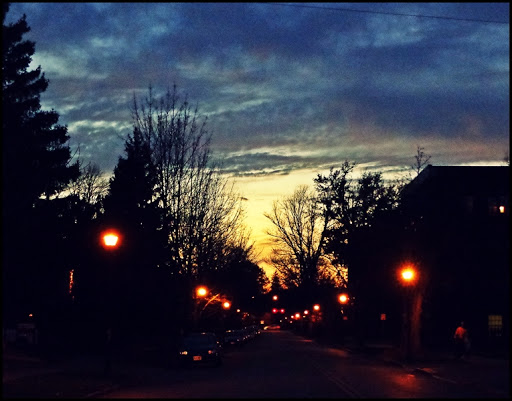 It was such a beautiful day and evening today; it felt more like spring than it did autumn. It was warm (freakishly warm)…70F/21C. Anyhow, I was at the intersection of Summer and Elmwood Streets, looking west, when I saw the scene pictured above. I thought I’d share.