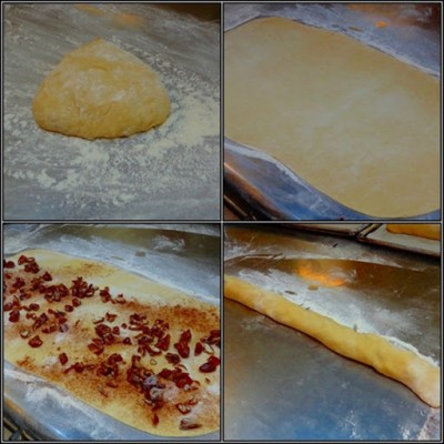 I made kuchen at work the other day, and whenever I make it—and especially when I eat it—memories come flooding back. I made them in straight logs so they were easy to slice, but those that my mom made were always in a ring shape.