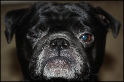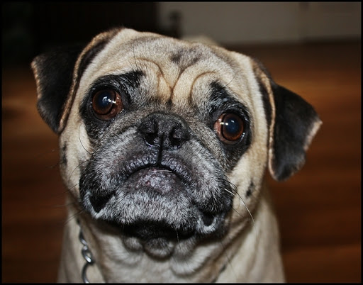 Okay, so I never thought I would be one of those people. You know the type…posting pictures of their dogs or cats in various poses all over the Internet. But every once in a while I feel the need to share a couple of my two pugs because they bring such joy into my life (and they really make me laugh). I’ve shared this info before, but the above pug is Franklin and below is Maxwell. They are brothers from the same parents but different litters. Maxwell is a year older and was given to my son as a gift from the breeder, and I purchased Franklin so Maxwell would have a companion after my beloved Jack had to be put down; and it’s for this reason Maxwell thinks he is priceless. And it is interesting how different their personalities are. Maxwell is super smart, serious, the protector of the house, and super loyal to two people…my son and myself; he’s interested in no one else (look at that look of devotion). Franklin, on the other hand, is happy-go-lucky and…how can I say this lightly…well, um, not-so-smart. But what he lacks in smartness he makes up for in affection…all he wants out of life–besides being fed– is to be pet and cuddled, and by anyone and everyone. The above picture cracks me up every time I look at it. I was playing around with a camera, taking a few random shots, when he stood on his hind legs with his paws on my knees (I was sitting), so I took a few closeups of him. And in the above image (I didn’t realize this at the time)–for whatever reason–he blinked just one eye…winking at me. And he did this just as I pressed the shutter. Comical. Anyhow, I felt like sharing this.