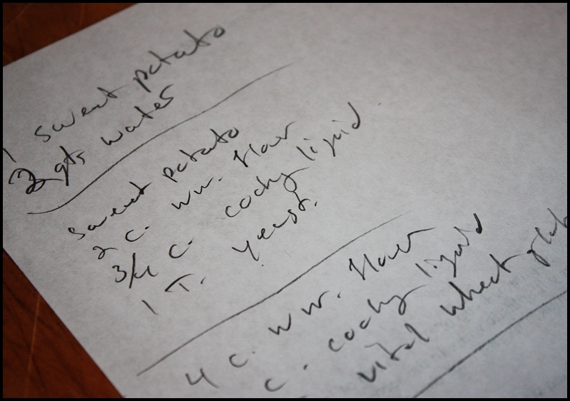This bread is really delicious, nutritious, and simple to make. But contrary to what you may be thinking it is not overtly sweet (just mildly); it’s really a savory bread (but it does make great French Toast); I’ve eaten 3/4 of a loaf in the past few days. The sweet potato adds more than flavor and nutrition to the bread, it also adds a certain subtle softness and airiness. You’ll be surprised how soft this bread is even though it is made with 100% whole wheat flour. Anyhow, the recipe is below.