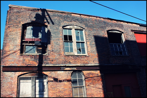 Firstly I have to say a couple things. Mainly an apology (if these pictures bore you). This is the most photos I’ve posted at one time. But sometimes I simply cannot help myself. I am proud of my beautiful city and it’s long history. Yes, I realize–to my friends “across the pond” who are reading this–by some standards Buffalo is not an old city, but in North America it is. Anyhow, it was such a beautiful spring morning (crisp and not a cloud in the sky) that I felt like taking a bike ride (big surprise, right?). So I packed a couple cameras, lenses, and a tripod on my bike and rode through a few of our cities oldest and original neighborhoods…the Cobblestone District, the Old First Ward, and the area around the Grain Elevators and the Buffalo River. While the First Ward is a residential area, the others are not…especially around the grain elevators. And when I went there this morning it was–not surprisingly–devoid of people; the crumbling buildings in the Cobblestone District was the same. And it felt incredibly beautiful to me…big hulking grain elevators with the sound of nature all around me. There were, for example, wild geese all over the place. It’s as if the area has regressed into an unofficial nature preserve without the help of humans. The abandoned grain elevators and buildings in the Cobblestone District were like architectural ghosts…not really living but not ready to make the transition to the other side. They themselves–without words–have a story to tell about the Queen City. I shot nearly a hundred photos this morning, and here’s a few I thought I’d share.