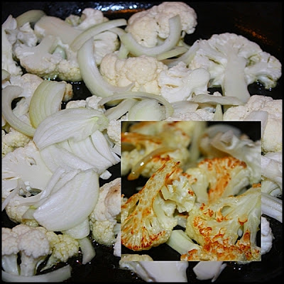 Okay, so maybe this will take more than five minutes, but not more than ten. And while I made this with cauliflower this could easily be adapted to other vegetables as well. The key factors are onion, garlic, spices, and caramelizing the vegetable. It is really easy, and this is how I made it.
