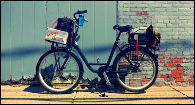 #479 (above)…a cardboard box containing 3 loaves of freshly baked chickpea turmeric bread, a camera bad containing an extra camera and two lenses, a canvas bag containing a few books and an electronic reader, and an empty dough rising bucket.