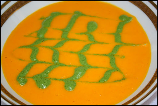 Carrot Vichyssoise with Curry, Yogurt, and Parsley Purée
