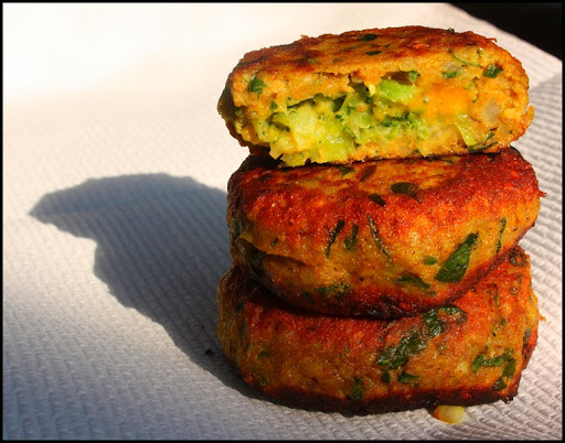 This is a contemporary version (fusion?) of traditional Lebanese kibbeh (pie or patties made with meat or vegetables and bulgar wheat). Most often this is made with meat (and sometimes eaten raw), but there are plenty of vegetarian versions out there as well, and this is just one of them. The vegetable recipes are usually eaten during Lent, but in my opinion are just as good any time. Potato is one of the traditional recipes, but what makes this nontraditional is the hashwa (stuffing)…it is made of broccoli and cheddar. Anyhow, this may look complicated at first, but it’s really not. Each recipe is really simple to make. And as always, these are just suggestions, use whatever seasonings or ingredients that suits your needs or tastes.