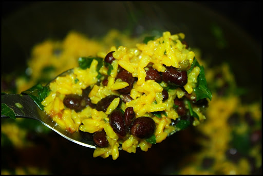 Rice-and-beans (yum!)…what is not to like about this dish. It’s simple to make, it is made using one single pot, it is really inexpensive to produce even large quantities, variations are seemingly endless, and it is really good for you…some say it carries complete nutrition (this is an interesting but brief article at NPR). For many peoples around the globe this is a mainstay in their diet. Indeed, for a brief period way back in the mid-1980’s I pretty much survived on a 99¢ red beans-and-rice lunch special while living a vagabond life in New Orleans. Rice and beans also fits nicely into the Mediterranean diet, which I love and have pretty much eaten for years without trying. Rice dishes and pasta dishes are the two main dishes that I eat at home. And over the years I’ve slowly migrated to using whole wheat pasta and brown rice in the recipes, which of course tastes just as good but are so much better for you. Anyhow, because I eat this dish so often–or variations of it–I thought I’d start recording some of the recipes and sharing them. The recipe below is the basic formula for this recipe and the one on which most of my rice pilafs are based. I used canned beans in this particular recipe–which I sometimes do–but to use dried beans simply soak, then cook and drain, a little more than 1/2 cup dried beans, which will yield about the same as a 15 ounce can. The difference between the recipe below and the one pictured is subtle. I added a half teaspoon of turmeric to the recipe (as I do with most my rice recipes because I like the yellow hue and also because turmeric is so good for you). I also added a diced jalapeno, and a handful of chopped parsley and basil that I had growing in my garden. With meat or without (or even with seafood) this recipe is delicious and really good for you. And leftovers taste really good, too…