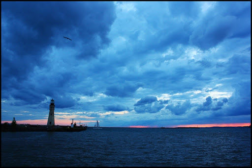 This evening’s weather was almost autumnal…cool, windy, and large rolling clouds. And for whatever reason, I found myself somewhat stressed today (yes, even on my day off that crazy mind of mine never stops reeling). Stress, for me, often morphs into depression or at least a case of melancholia, which is how I felt earlier. So as a remedy I thought I’d ride down to the waterfront and take a few photos, both of which–photography and physical exercise–are often good remedies for this. Once there, I purchased a beer and set up my tripod at water’s edge; the day’s light was just beginning to fade. It was not crowded as it often is, likely because of the weather. And I’m not sure what it is about a guy with a camera, and specifically a guy with a camera on a tripod, that makes people talk to him, but it happens all the time to me. Anyhow my point is during the hour or hour-and-a-half that I spent down there sipping beer and taking photos numerous people came up and talked with me, a few at length. And it felt good, that’s the only way to explain it. Maybe it was the awesomeness of the weather conditions in front of us, maybe not, but I felt a deep connection to each soul to which I interacted…complete strangers discussing commonplace things. Anyhow, it was this connection I believe that really changed my mood…shifted it. We are all in fact–I also believe–angels in the midst of this thing we call life. And now is the time that we happen to be on this planet. We should make the best of the time we have…